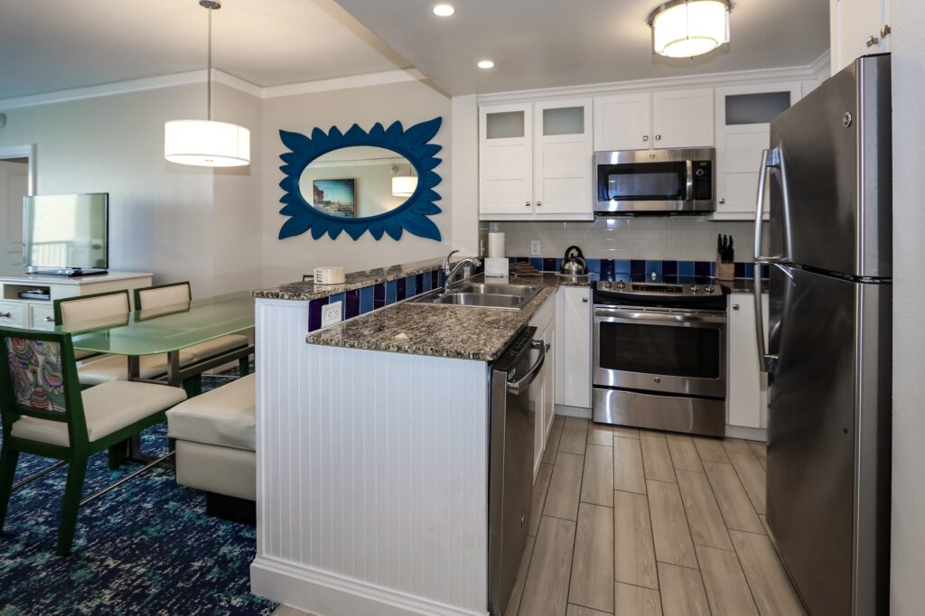 Marriott’s OceanWatch offers large 2 bedroom villas with modern amenities, making it an ideal choice for families and groups. Each villa includes a fully equipped kitchen, separate living and dining areas, and a private balcony.